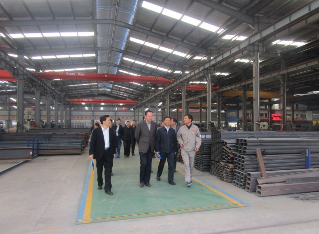 領導一行先后走訪了公司的生產車間:倉欄組裝生產流水線、平板生產流水線、特種車后翻/側翻自卸生產流水線、生產備料車間等,公司副總經理歐德保為領導們詳細介紹了我司的半掛車車廂產品,領導們對我司的生產流水線給予高度評價和贊賞,覺得我司產品在專用汽車行業非常出色,對我司這幾年來的高速發展表示贊賞。