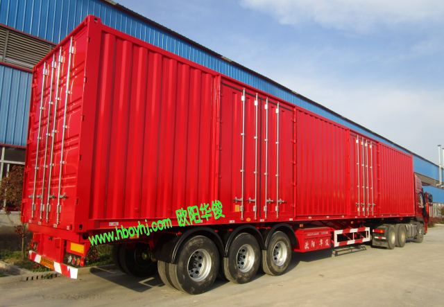 ①、廂式運輸半掛車與欄板、倉柵半掛車相比,具有防護條件好,避免了刮風下雨等氣候變化對貨物的損傷,同時由于廂式汽車運輸是封閉式運輸,能夠減少貨物被盜的損失,大大提高了貨物運輸的安全性。