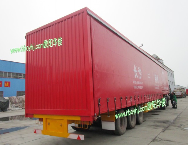 ◆ 產品特點:它與暴露運輸汽車相比能夠防雨、防塵、隔熱、平安、環保,是一種全天候的運輸工具。通過設置在邊梁內對開孔進行遮掩,密封效果好,并可以使側簾布體積小、側簾布易收起、方便使用者操作。