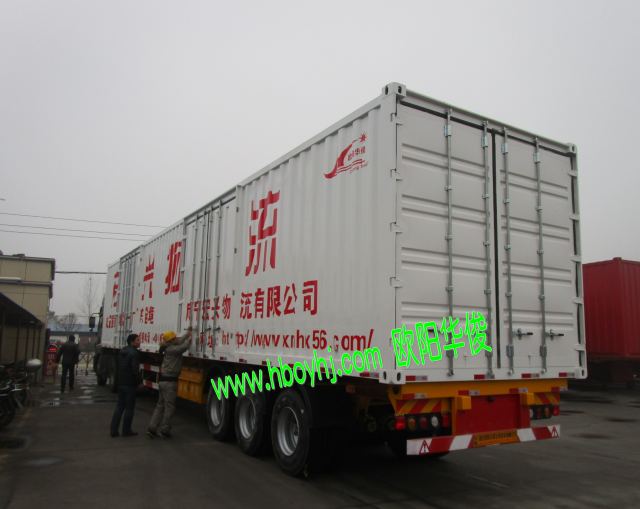 發布日期:2016-01-06 15:36:35 編輯:歐陽華俊 瀏覽量:2177全新48英尺【15米】黃色骨架半掛車配16米白色集裝箱完工交付啦!這次咸寧雷老板對我們做的集裝箱非常滿意,上面噴的廣告信息也很大氣漂亮!說年后物流公司還會有幾臺集裝箱要來訂做。《湖北歐陽華俊專用汽車有限公司歡迎您!》