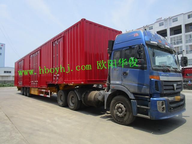 發布日期:2016-07-14 14:11:16 編輯:歐陽華俊 瀏覽量:2392漂亮的48英尺黃色骨架配17米紅色集裝箱完工交付,此骨架半掛車的尺寸為15米×2.5米寬,能長期的反復使用,具有足夠的強度。集裝箱主要用于船舶、港口、航線、公路、中轉站、橋梁、隧道、多式聯運相配套的物流系統。祝湖南岳陽的吳老板一路順風,財源廣進!《湖北歐陽華俊專用汽車有限公司歡迎您》