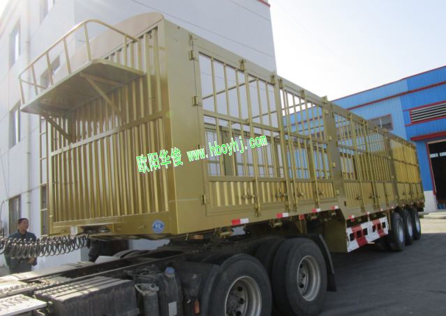 發布日期:2017-03-28 16:47:26 編輯:歐陽華俊 瀏覽量:506413米大開門高低板倉柵式運輸半掛車完工交付宜城客戶,此高欄半掛車廂的尺寸為:13米長×2.5米寬×2.1米高,每邊3對大開門,對開門合用雙鎖桿結構,強度高可靠性好。后門采用廂式對開樣式。
