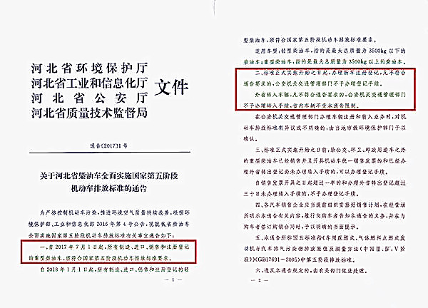 據(jù)了解,自2017年7月1日起,在陜西省行政區(qū)域內(nèi)所有生產(chǎn)、進口、銷售、注冊和轉(zhuǎn)入登記的重型柴油車、重型兩用燃料車、重型單一氣體燃料車,須符合“國五”排放標準要求。外地轉(zhuǎn)入車輛也需執(zhí)行“國五”排放標準,2017年1月1日起,西安市對不符合“國五”排放標準的新車和外地轉(zhuǎn)入車輛,不予注冊和轉(zhuǎn)入登記。