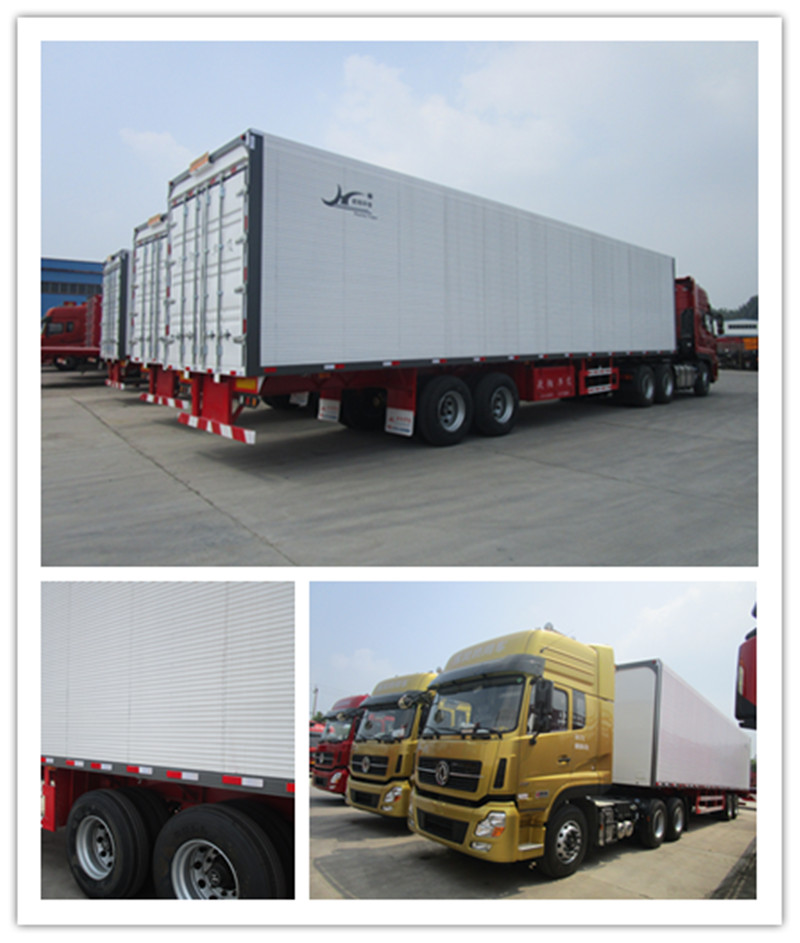 大概的尺寸有:載貨車上專用的6.8米長、7.6米長、9.6米長的飛翼車廂。還有牽引車配套的12米長、12.5米長、13米2軸或3軸的翼開啟廂式運輸半掛車。