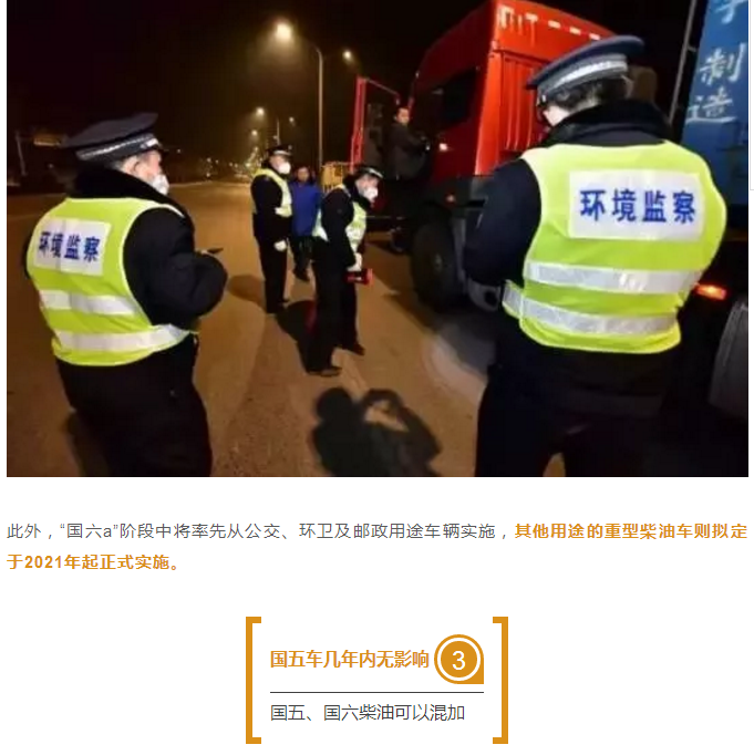 2017年10月起,北京、天津、河北、山東、山西、河南等6省的部分城市禁止銷售低于國六標準的車用汽柴油。