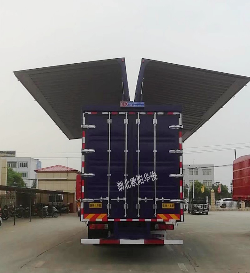 【車型優點】:該車兩翼側板可升降、開啟90°,使兩側部位完全敞開,極大地方便裝卸貨物;該車整車設計獨特,結構合理,外形美觀,各類性能指標均達到同類產品先進水平,并有防雨、防塵、防曬、防盜、耐腐蝕等優點;此車密封性好,適合機械快速裝卸,速度快,效率高,省時間,省人工。
