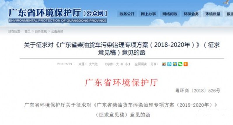 5月24日,《廣東省柴油貨車污染治理專項(xiàng)方案(2018~2020年)(征求意見稿)》開始公示,將對(duì)柴油貨車污染治理出大招。
