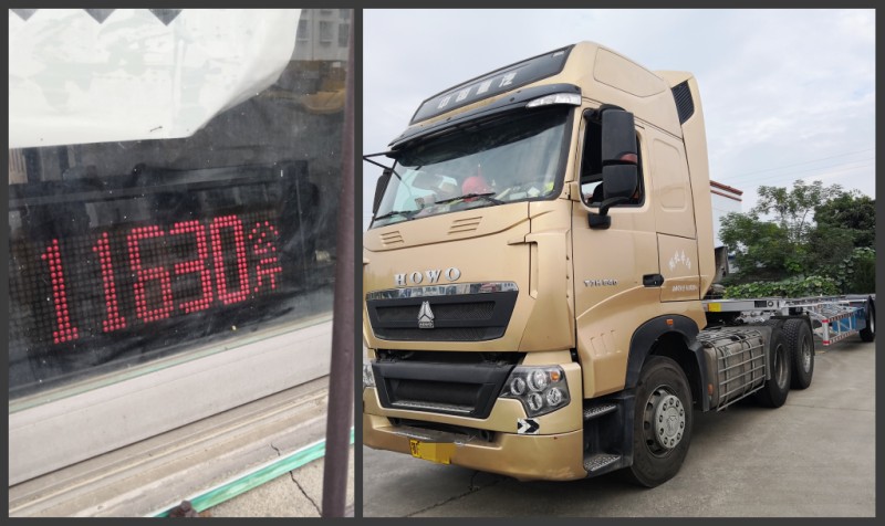 李總的HOWO中國重汽牽引車頭配13.95米骨架半掛車, 整車自重11.63T,車頭重9.2噸,掛車配有4套輪胎鋼圈(此為少8套的重量)。高強鋼制作的骨架半掛車,工藝再次升級,特別是我們的水箱制作和焊接,讓客戶很滿意,我們一起來觀賞此款漂亮的輕型骨架半掛車。