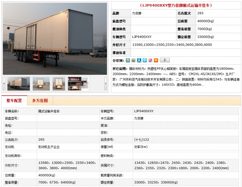 發布日期:2018-10-10 03:34:03 編輯:歐陽華俊 瀏覽量:4298好消息:本公司現有一臺13米廂式半掛車公告樣車,車橋品牌可自選全新的配置,尺寸為:13米長×2.55米寬×4米離地高,內高2.45米,此車廂自重6.7噸左右,車廂兩邊側板采用很新材質的輕質蜂窩板,質量好,密封性強,防水效果好。
