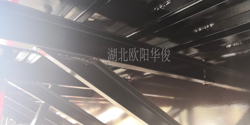 貫穿梁用8#槽鋼,底板鋪9根5#槽,可上叉車