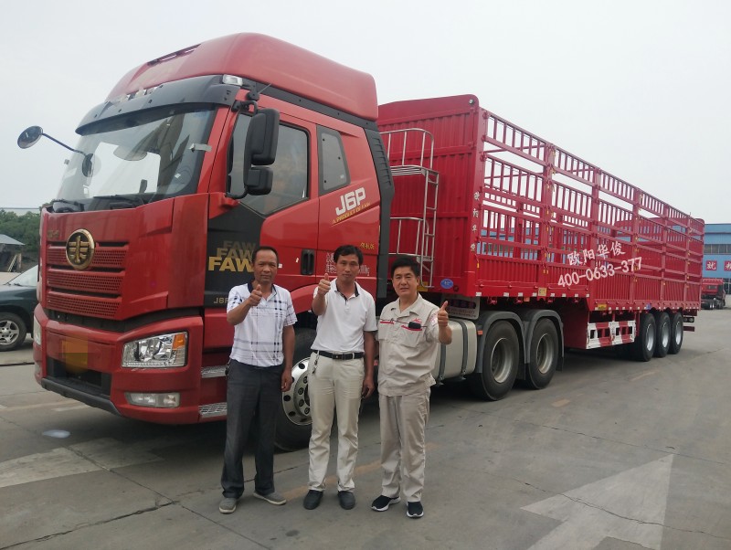 你是很棒的!歐陽華俊13米高欄半掛完工交付河南客戶,奔赴財富大道