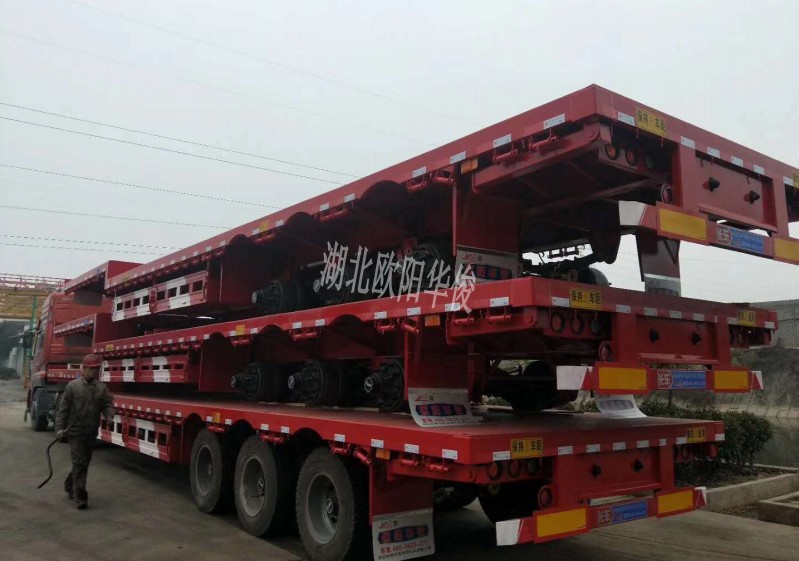 歐陽華俊掛車廠現(xiàn)車發(fā)售13.75米等寬大板可上鉤機的配置