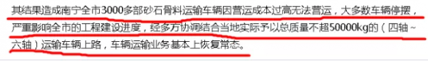 產(chǎn)能的提升必然會促成對運輸車輛需求的加大,而近年來由于嚴查超載,柳州市也對車輛的標準準裝載和車廂合規(guī)做出了嚴格限制,結(jié)果調(diào)查發(fā)現(xiàn)治超造成了南寧全市3000多部砂石骨料運輸車輛因營運成本過高無法營運,大多數(shù)車輛停擺,嚴重影響了全市的工程建設(shè)進度。