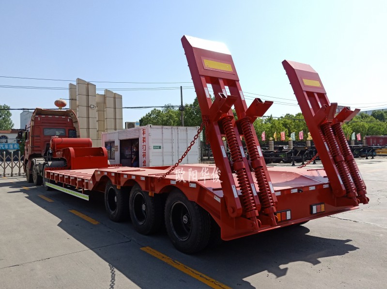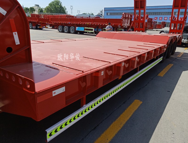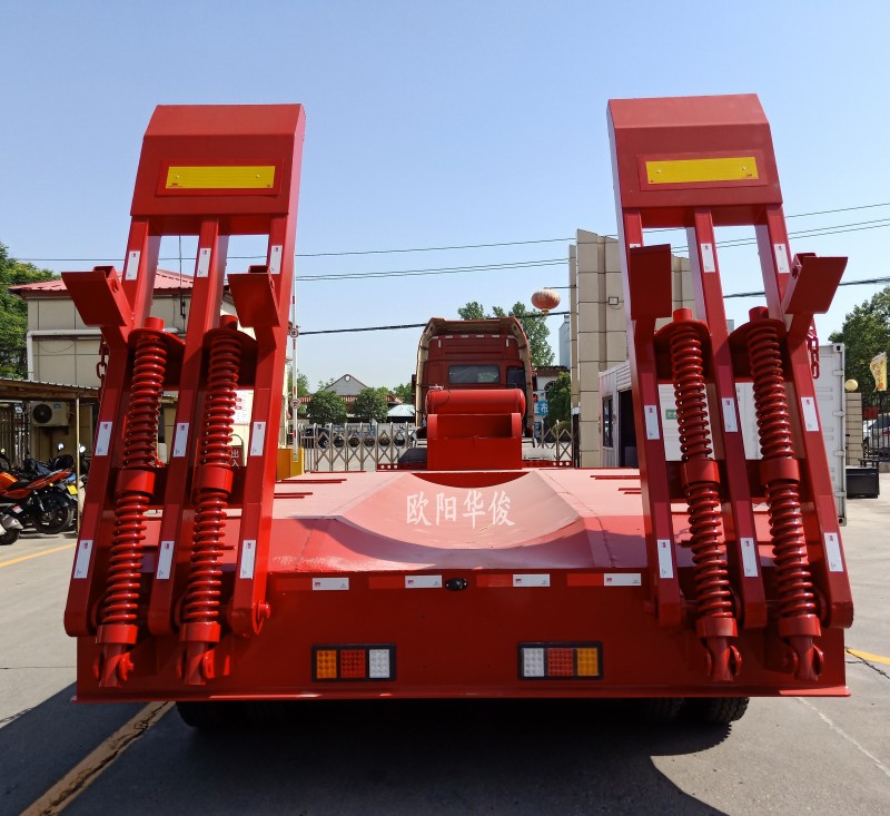 拉挖機就選它!歐陽華俊12.5米3軸低平板鉤機板運輸半掛廠家直銷