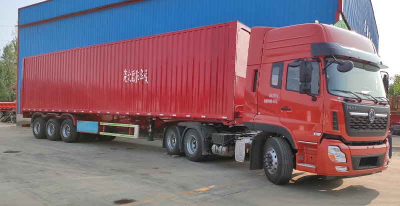 掛車(chē)自重10噸。40英寸骨架尺寸:13米(長(zhǎng))×2.55米(寬)×1.55米(離地高)。車(chē)廂外形尺寸:13米(長(zhǎng))×2.55米(寬)。