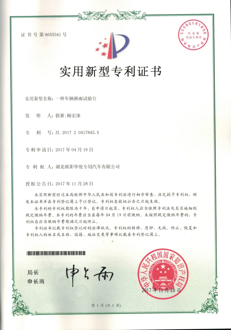 歐陽華俊作為12年多的老廠,所生產(chǎn)的箱式車廂設(shè)計獨特,結(jié)構(gòu)合理,外形美觀,各類性能指標均達到同類產(chǎn)品先進水平,并有防雨、防塵、防曬、防盜、耐腐蝕等優(yōu)點。廠區(qū)內(nèi)設(shè)有淋雨試驗臺,確保每位提車出廠客戶滿意而歸!《公司設(shè)計的淋水試驗臺,已獲得國家知識產(chǎn)權(quán)局專利證書》