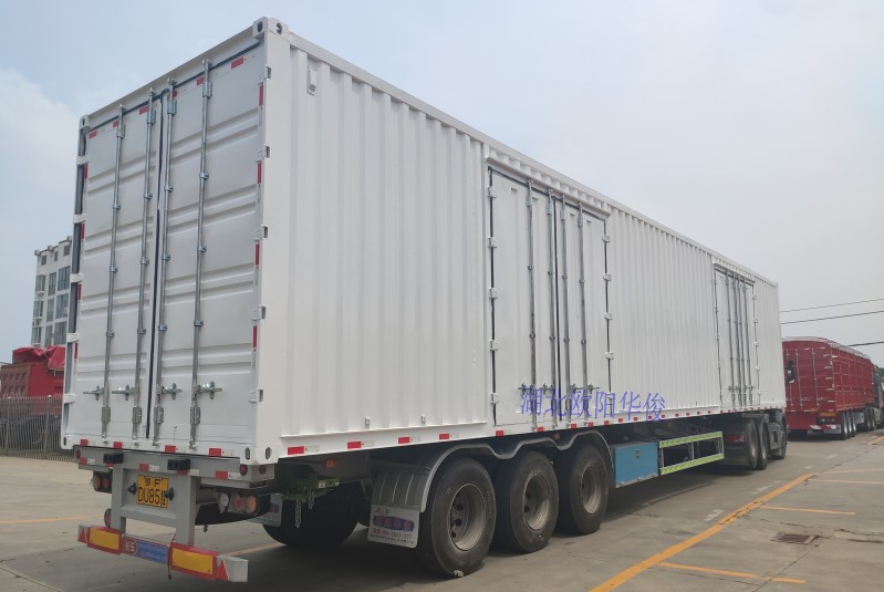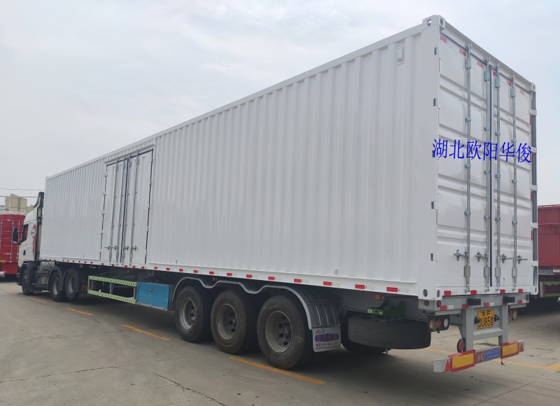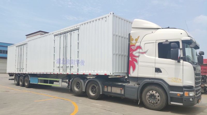 湖北歐陽華俊生產(chǎn):您要的120方大空間的骨架集裝箱半掛車來啦~