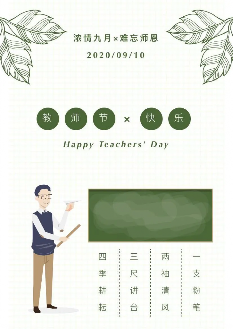 發(fā)布日期:2020-09-10 02:28:37 編輯:歐陽(yáng)華俊 瀏覽量:1857正值36個(gè)教師節(jié)到來(lái)之際,華俊全體家人們?yōu)樘煜吕蠋熕蜕献8!4喝A秋實(shí),桃李沁香,憶往昔,思老師,一股股喜悅一股股心酸涌上心頭,美好歲月的陪伴,展翅高飛后的離別,我們與每一位老師的故事,將銘記在人生歷程中,祝愿天下老師:桃李天下,春暉四方。