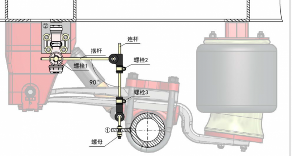 3、首次重載運行后應對板簧梁U型螺栓螺母、氣囊底座及頂板固定螺栓螺母、板簧梁主銷螺母進行檢查緊固。