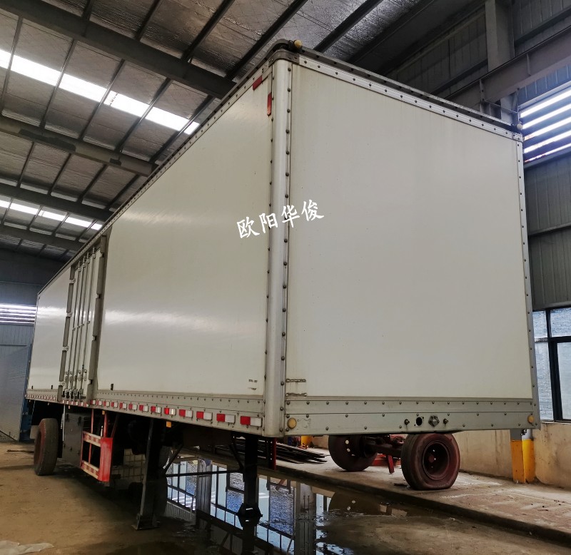 車廂尺寸為:13米長×2.55米寬×4米離地高,內高2.45米,整車自重6.7噸左右,車廂兩邊側板采用很新材質的輕質蜂窩板,質量好,密封性強,防水效果好。