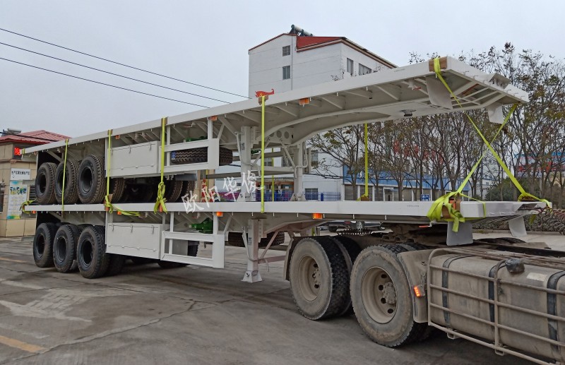 眾所周知,國外采購商對產品品質及穩定性要求非常嚴格,不僅需要符合國內的標準,也需要滿足目的地國家的標準和法規。此次出口的平板半掛車是根據海外客戶運輸特點,路況以及運輸品類,專門量身設計打造的專用車型。
