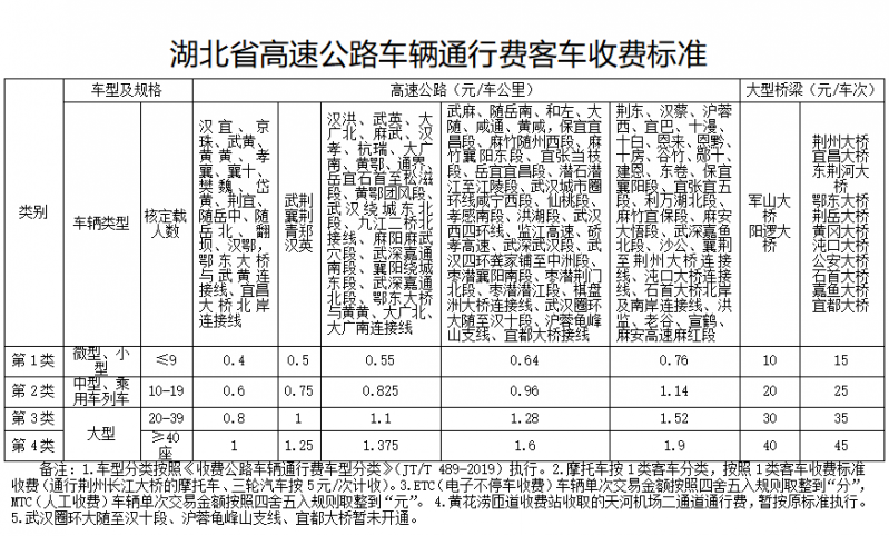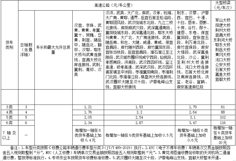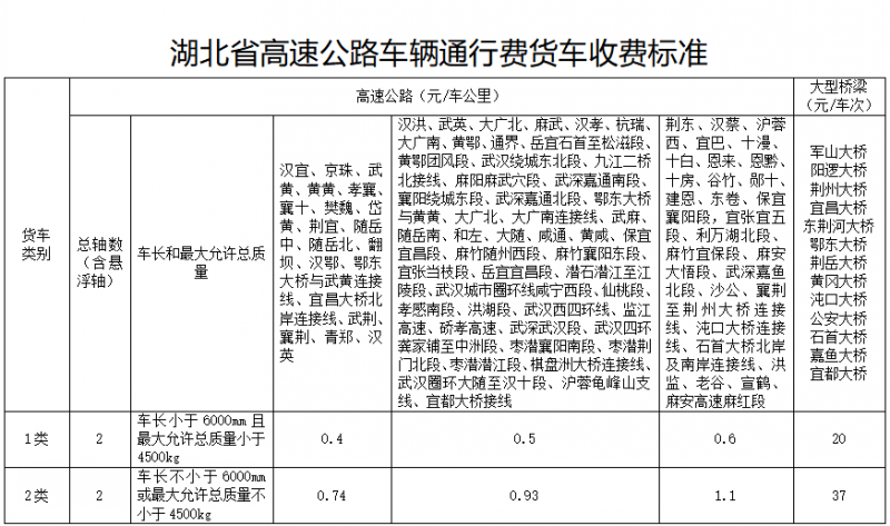 2021年1月25日,湖北發布很新高速公路車輛通行費貨車、客車收費標準,詳情如下: