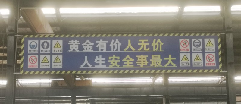 公司的每個車間內,在顯眼的位置都懸掛的有各種安全標識語.