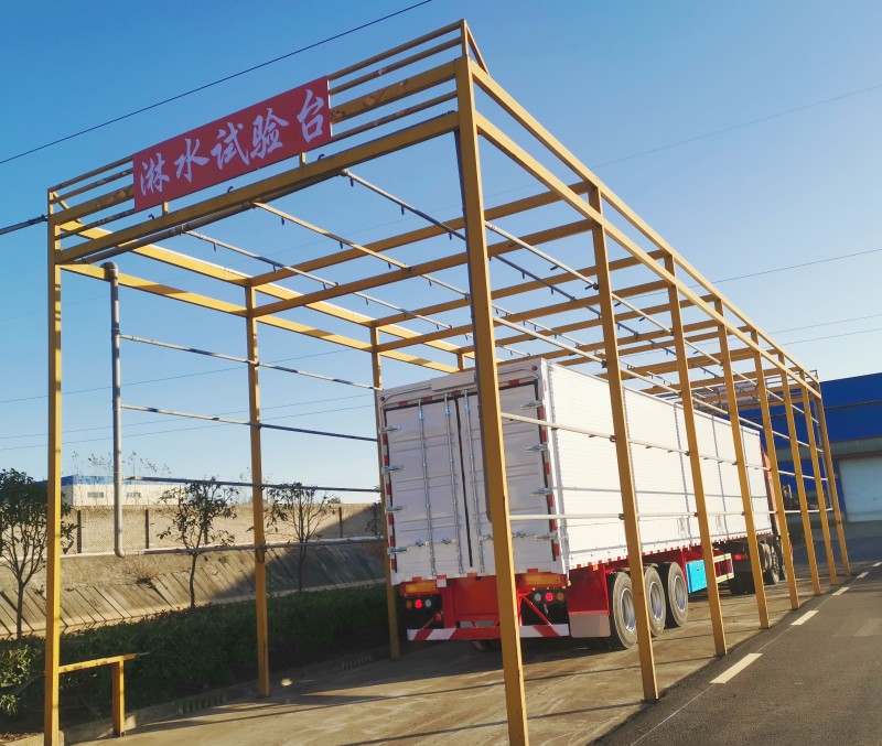 主要負(fù)責(zé)油漆噴涂、水電氣路安裝、輪胎車橋安裝等工作。我們引進(jìn)了兩套自動(dòng)噴砂設(shè)備,經(jīng)噴砂后的掛車,油漆涂層飽滿、均勻、光滑、無死角,附著力、耐腐、滲透性能都是其它傳統(tǒng)涂裝工藝無法比擬的。我們的油漆房也是完全符合國家環(huán)保標(biāo)準(zhǔn)的,廢水經(jīng)過環(huán)保處理后可循環(huán)利用。此外,我們2016年自主研發(fā)設(shè)計(jì)了淋水試驗(yàn)臺(tái),徹底解決了集裝箱漏水問題,獲得了國家知識(shí)產(chǎn)權(quán)局專利證書。