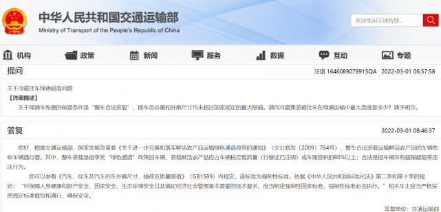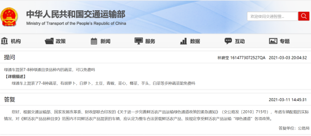 交通部回復(fù)中不享受綠通的農(nóng)產(chǎn)品: