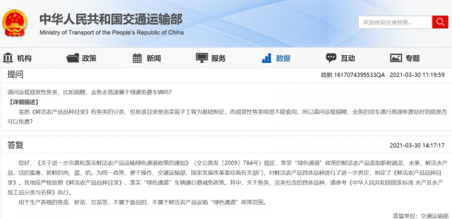 請問運(yùn)載觀賞性魚類,比如錦鯉,金魚走高速屬于綠通免費(fèi)車輛嗎?