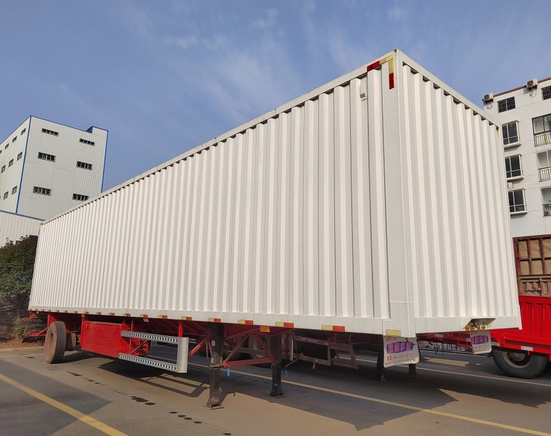 廂式半掛車采用高強度的冷扎瓦楞鋼板,無骨架結構,裝貨空間大,廂體內合理分布,具有多拉、重載、自重輕的特點。
