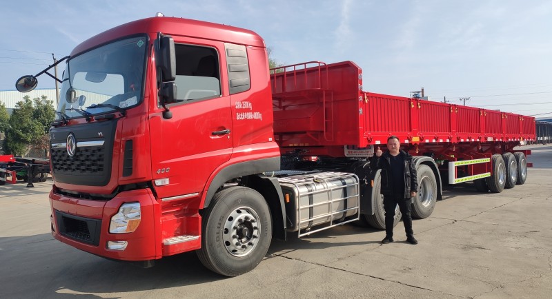 王總訂購5臺(tái)歐陽華俊13米側(cè)翻自卸半掛車批量發(fā)車 2021-03-01