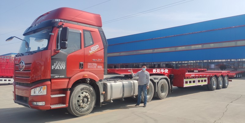 由于GB7258政策出臺(tái)倉欄、欄板購車成本上升,17.5米平板半掛車也走向末路,13.75米成為長途運(yùn)輸中優(yōu)先考慮車型,歐陽華俊每天都陸陸續(xù)續(xù)發(fā)車十余臺(tái)平板,小編偶遇河南付老板,和付老板交談中了解,卡友還是比較信賴歐陽華俊掛車品質(zhì),并對(duì)自己的愛車非常滿意! 恭喜河南