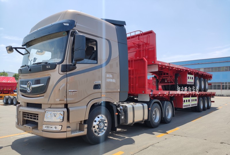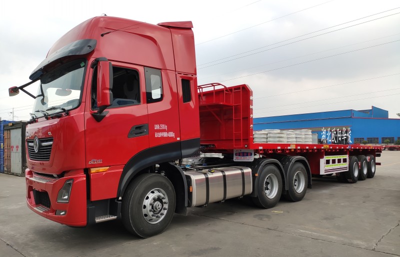 歐陽華俊12年來在半掛車生產領域擁有出色的制造工藝,收獲了大量客戶的芳心。其中江西九江鄭總就對歐陽華俊半掛車品質信賴有加,一次訂購了4臺平板半掛車,2臺13米平板半掛車背車2臺11米平板半掛車發車江西九江,節約了成本和運費。 2臺平板