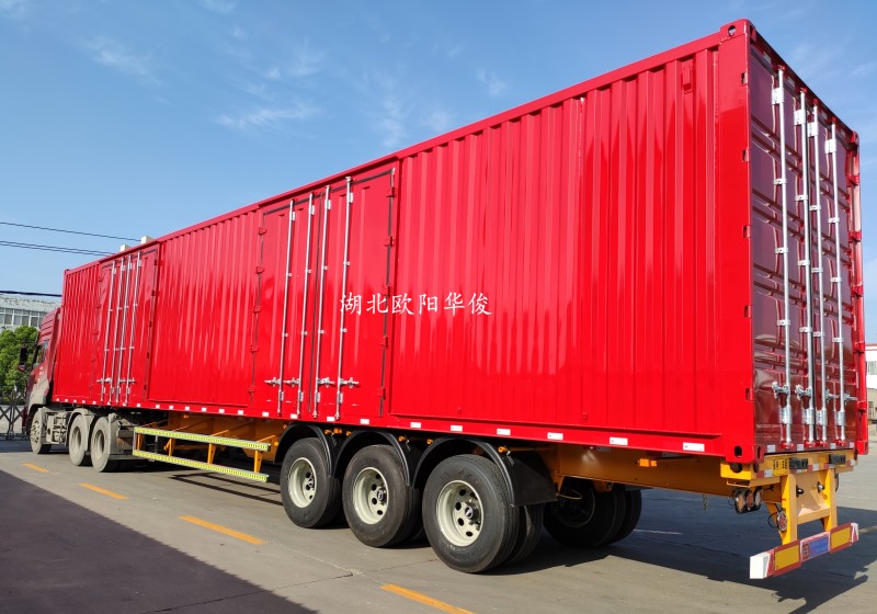 近日,歐陽華俊一批13米、13.75米2軸廂式半掛經過淋水試驗臺檢驗合格,如期離廠!廂式半掛車廂頂有封閉式、推拉開啟式、敞開式、敞口代篷布桿式等,操作方便,滿足用戶多樣化、個性化要求。 廂式半掛車主要適用于家用電器、輕紡貨物、煤炭、沙石等建筑材料以及圖盤貨物的運輸。