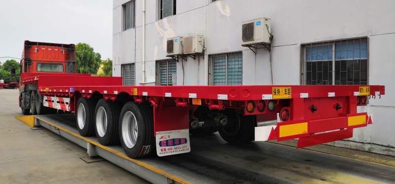 歐陽華俊13米直梁低平板半掛車完工交付老客戶馮總,此平板半掛車的尺寸為:13米長×2.55米寬×2.7米離地高,全封閉式前站板,祝提車的老板們生意興隆,馬達一響,黃金萬兩! 歐陽華俊高強鋼平板半掛車,車輛使用壽命更長,是您中、短距離運輸鋼材、板材等貨物多拉快跑的選擇車