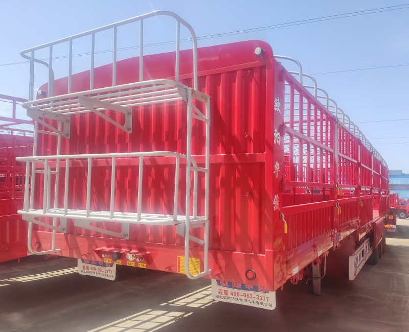 好消息!歐陽華俊現有1臺空懸碟剎13米倉欄半掛車低價出售,優惠力度大,隨時提車,先到先得啊。歐陽華俊空懸碟剎倉欄半掛車,性價比更高、更耐用、保值率高等優點,深受卡友的喜愛。 整車尺寸:13米(長)×2.55米(寬)×1.6米(倉欄高)
